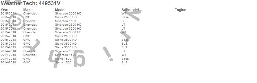 Below is an abbreviated list of applications for the FloorLiner DigitalFit.Sierra 1500, Sierra 2500 HD, Sierra 3500 HD, Silverado 1500, Silverado 2500 HD, Silverado 3500 HD, Chevrolet, GMC, 2019, 2018, 2017, 2016, 2015, 2014