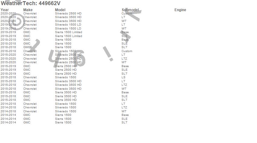 Below is an abbreviated list of applications for the FloorLiner DigitalFit.Sierra 1500, Sierra 1500 Limited, Sierra 2500 HD, Sierra 3500 HD, Silverado 1500, Silverado 1500 LD, Silverado 2500 HD, Silverado 3500 HD, Chevrolet, GMC, 2020, 2019, 2018, 2017, 2016, 2015, 2014