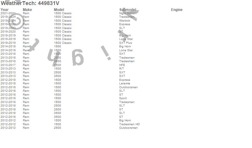Below is an abbreviated list of applications for the FloorLiner DigitalFit.1500, 1500 Classic, 2500, 3500, Ram, 2024, 2023, 2022, 2021, 2020, 2019, 2018, 2017, 2016, 2015, 2014, 2013, 2012