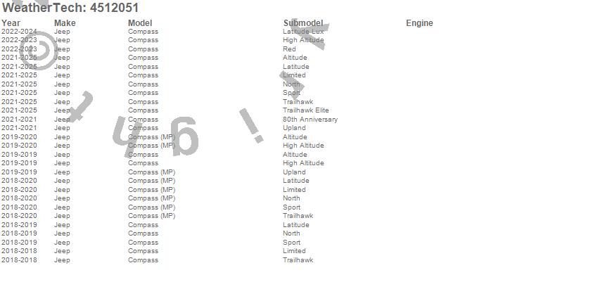 Below is an abbreviated list of applications for the FloorLiner DigitalFit.Compass, Jeep, 2026, 2025, 2024, 2023, 2022, 2021, 2020, 2019, 2018, 2017