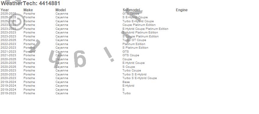 Below is an abbreviated list of applications for the FloorLiner DigitalFit.Cayenne, Porsche, 2026, 2025, 2024, 2023, 2022, 2021, 2020, 2019