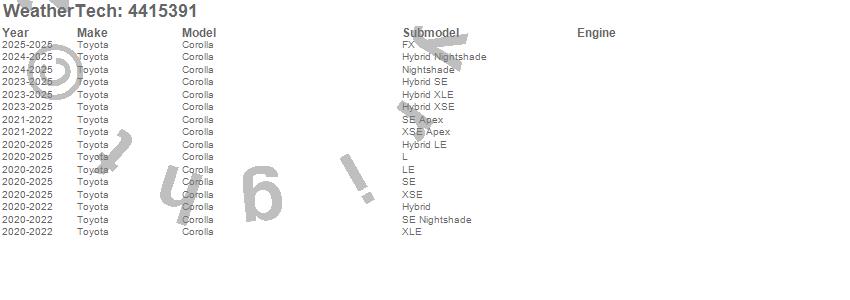 Below is an abbreviated list of applications for the FloorLiner DigitalFit.Corolla, Toyota, 2026, 2025, 2024, 2023, 2022, 2021, 2020