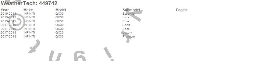 Below is an abbreviated list of applications for the FloorLiner DigitalFit.QX30, INFINITI, 2019, 2018, 2017