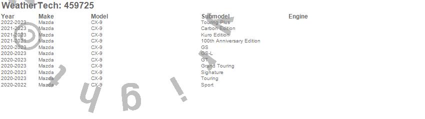 Below is an abbreviated list of applications for the FloorLiner DigitalFit.CX-9, Mazda, 2023, 2022, 2021, 2020