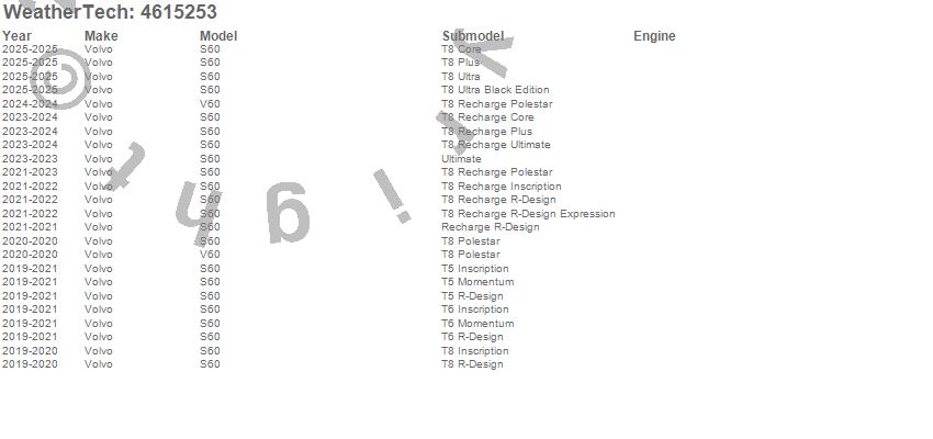 Below is an abbreviated list of applications for the FloorLiner DigitalFit.S60, V60, Volvo, 2025, 2024, 2023, 2022, 2021, 2020, 2019