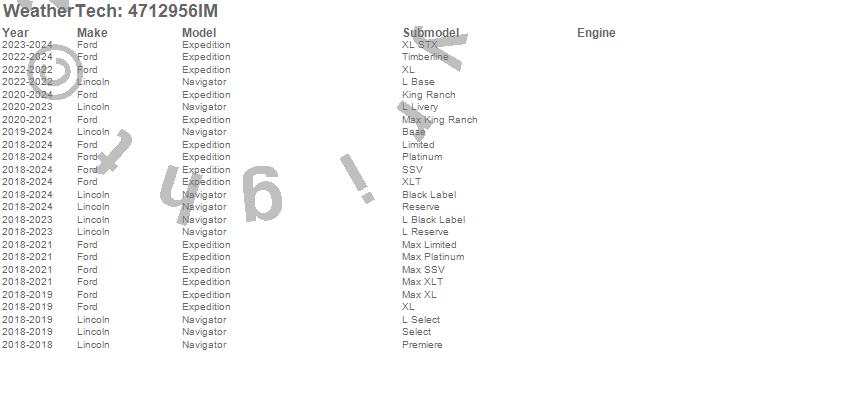 Below is an abbreviated list of applications for the FloorLiner HP.Expedition, Navigator, Ford, Lincoln, 2024, 2023, 2022, 2021, 2020, 2019, 2018