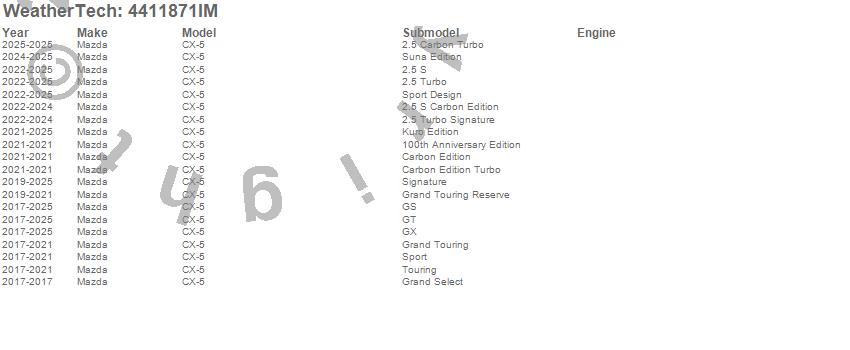Below is an abbreviated list of applications for the FloorLiner HP.CX-5, Mazda, 2025, 2024, 2023, 2022, 2021, 2020, 2019, 2018, 2017