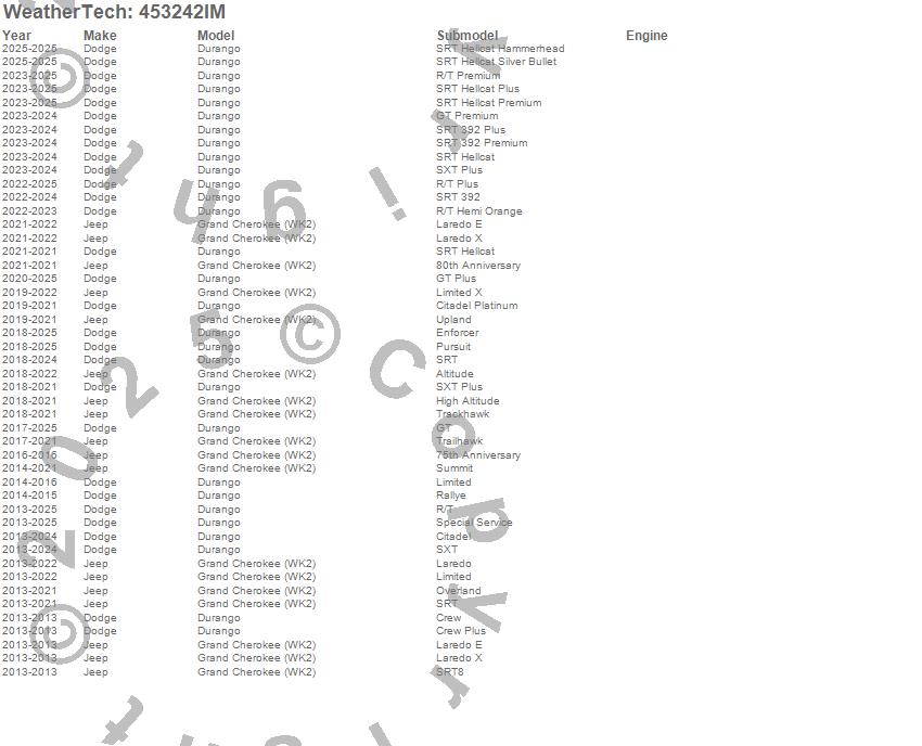 Below is an abbreviated list of applications for the FloorLiner HP.Durango, Grand Cherokee (WK2), Dodge, Jeep, 2026, 2025, 2024, 2023, 2022, 2021, 2020, 2019, 2018, 2017, 2016, 2015, 2014, 2013