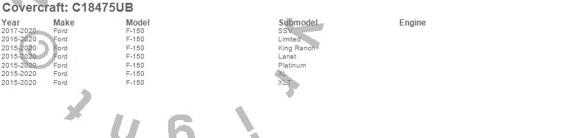 Below is an abbreviated list of applications for the Custom Fit Cab Cover.F-150, Ford, 2020, 2019, 2018, 2017, 2016, 2015