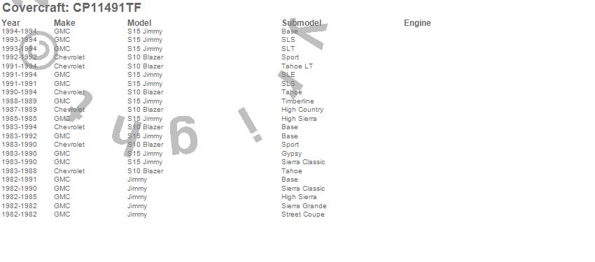 Below is an abbreviated list of applications for the Custom Cab Cooler.Jimmy, S10 Blazer, S15 Jimmy, Chevrolet, GMC, 1994, 1993, 1992, 1991, 1990, 1989, 1988, 1987, 1986, 1985, 1984, 1983, 1982