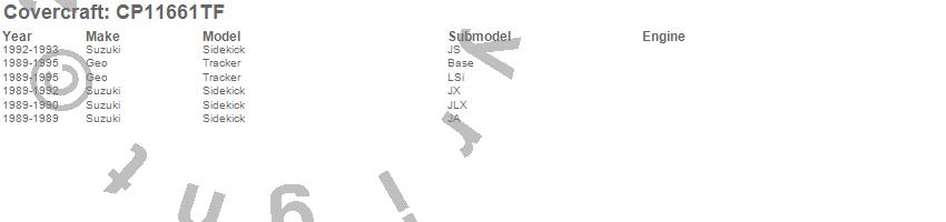 Below is an abbreviated list of applications for the Custom Cab Cooler.Sidekick, Tracker, Geo, Suzuki, 1995, 1994, 1993, 1992, 1991, 1990, 1989