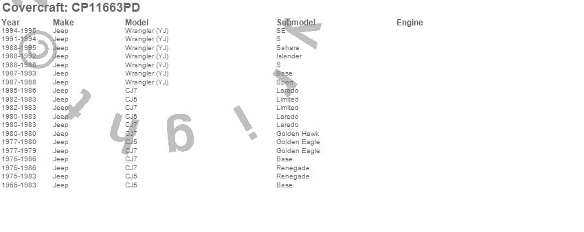 Below is an abbreviated list of applications for the Custom Cab Cooler.CJ5, CJ7, Wrangler (YJ), Jeep, 1995, 1994, 1993, 1992, 1991, 1990, 1989, 1988, 1987, 1986, 1985, 1984, 1983, 1982, 1981, 1980