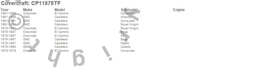 Below is an abbreviated list of applications for the Custom Cab Cooler.Caballero, El Camino, Chevrolet, GMC, 1987, 1986, 1985, 1984, 1983, 1982, 1981, 1980, 1979, 1978