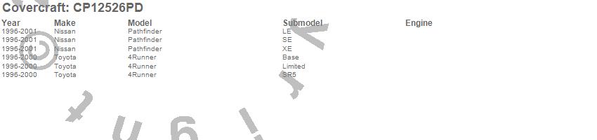 Below is an abbreviated list of applications for the Custom Cab Cooler.4Runner, Pathfinder, Nissan, Toyota, 2001, 2000, 1999, 1998, 1997, 1996