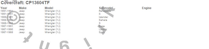 Below is an abbreviated list of applications for the Custom Cab Cooler.Wrangler (YJ), Jeep, 1991, 1990, 1989, 1988, 1987