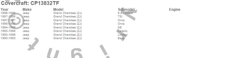 Below is an abbreviated list of applications for the Custom Cab Cooler.Grand Cherokee (ZJ), Jeep, 1998, 1997, 1996, 1995, 1994, 1993
