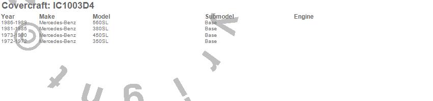 Below is an abbreviated list of applications for the Custom Convertible Interior Cover.350SL, 380SL, 450SL, 560SL, Mercedes-Benz, 1989, 1988, 1987, 1986, 1985, 1984, 1983, 1982, 1981, 1980, 1979, 1978, 1977, 1976, 1975