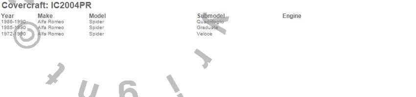 Below is an abbreviated list of applications for the Custom Convertible Interior Cover.Spider, Alfa Romeo, 1990, 1989, 1988, 1987, 1986, 1985, 1984, 1983, 1982, 1981, 1980, 1979, 1978, 1977, 1976, 1975, 1974, 1973