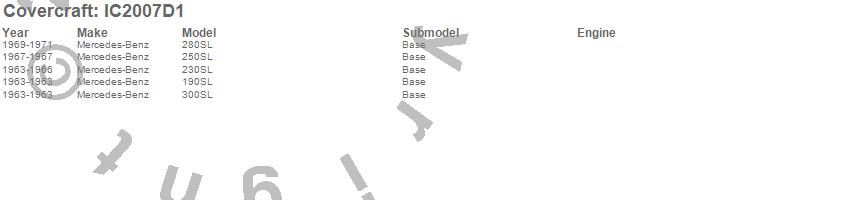 Below is an abbreviated list of applications for the Custom Convertible Interior Cover.190SL, 230SL, 250SL, 280SL, 300SL, Mercedes-Benz, 1971, 1970, 1969, 1967, 1966, 1965, 1964, 1963