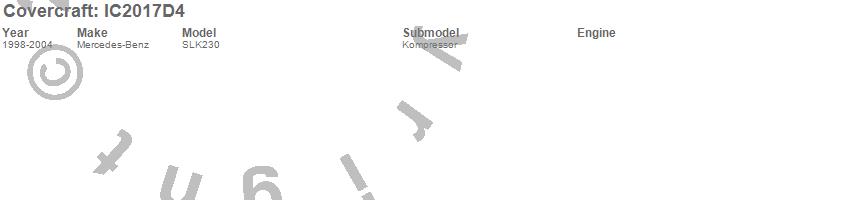 Below is an abbreviated list of applications for the Custom Convertible Interior Cover.SLK230, Mercedes-Benz, 2004, 2003, 2002, 2001, 2000, 1999, 1998