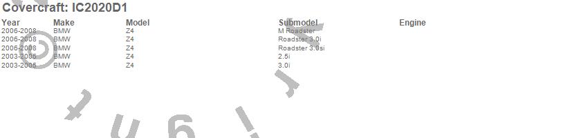 Below is an abbreviated list of applications for the Custom Convertible Interior Cover.Z4, BMW, 2008, 2007, 2006, 2005, 2004, 2003