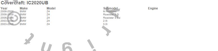 Below is an abbreviated list of applications for the Custom Convertible Interior Cover.Z4, BMW, 2008, 2007, 2006, 2005, 2004, 2003