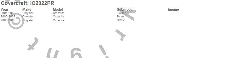 Below is an abbreviated list of applications for the Custom Convertible Interior Cover.Crossfire, Chrysler, 2008, 2007, 2006, 2005
