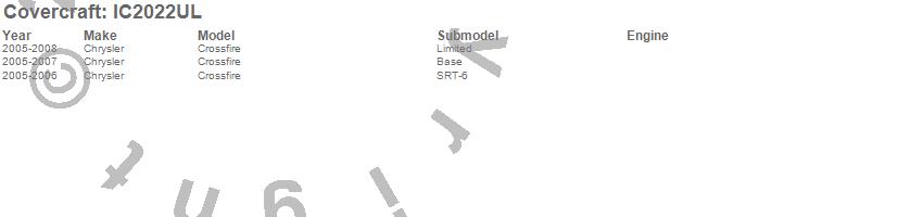Below is an abbreviated list of applications for the Custom Convertible Interior Cover.Crossfire, Chrysler, 2008, 2007, 2006, 2005