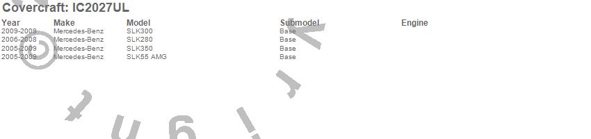 Below is an abbreviated list of applications for the Custom Convertible Interior Cover.SLK280, SLK300, SLK350, SLK55 AMG, Mercedes-Benz, 2009, 2008, 2007, 2006, 2005