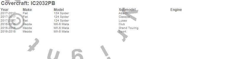Below is an abbreviated list of applications for the Custom Convertible Interior Cover.124 Spider, MX-5 Miata, Fiat, Mazda, 2017, 2016