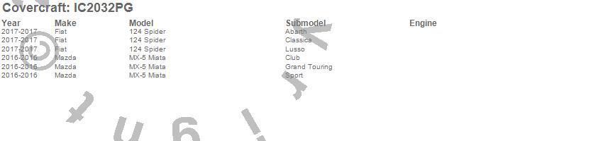 Below is an abbreviated list of applications for the Custom Convertible Interior Cover.124 Spider, MX-5 Miata, Fiat, Mazda, 2017, 2016