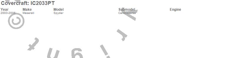 Below is an abbreviated list of applications for the Custom Convertible Interior Cover.Spyder, Maserati, 2006, 2005, 2004, 2003