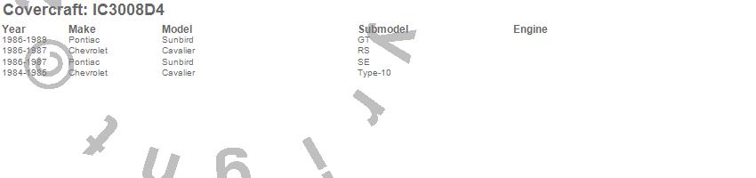 Below is an abbreviated list of applications for the Custom Convertible Interior Cover.Cavalier, Sunbird, Chevrolet, Pontiac, 1989, 1988, 1987, 1986, 1985, 1984