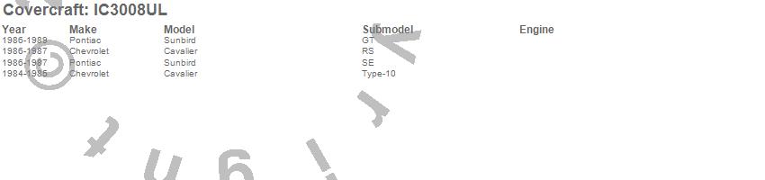 Below is an abbreviated list of applications for the Custom Convertible Interior Cover.Cavalier, Sunbird, Chevrolet, Pontiac, 1989, 1988, 1987, 1986, 1985, 1984