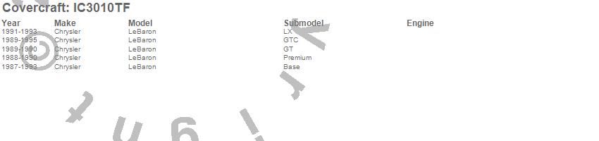 Below is an abbreviated list of applications for the Custom Convertible Interior Cover.LeBaron, Chrysler, 1995, 1994, 1993, 1992, 1991, 1990, 1989, 1988, 1987