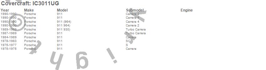 Below is an abbreviated list of applications for the Custom Convertible Interior Cover.911, Porsche, 1990, 1989, 1988, 1987, 1986, 1985, 1984, 1983, 1982, 1981, 1980, 1979, 1978, 1977, 1976, 1975