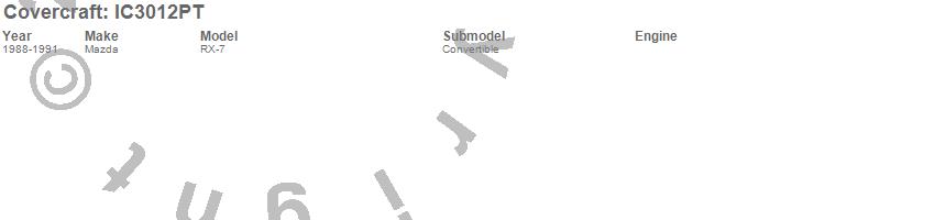 Below is an abbreviated list of applications for the Custom Convertible Interior Cover.RX-7, Mazda, 1991, 1990, 1989, 1988