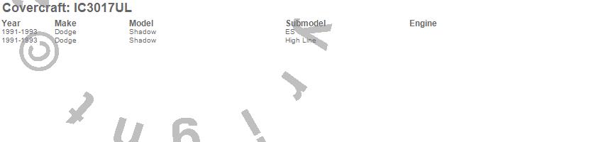 Below is an abbreviated list of applications for the Custom Convertible Interior Cover.Shadow, Dodge, 1993, 1992, 1991