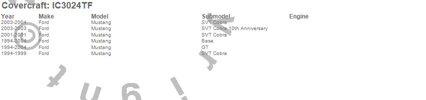 Below is an abbreviated list of applications for the Custom Convertible Interior Cover.Mustang, Ford, 2004, 2003, 2002, 2001, 2000, 1999, 1998, 1997, 1996, 1995, 1994