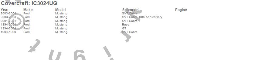 Below is an abbreviated list of applications for the Custom Convertible Interior Cover.Mustang, Ford, 2004, 2003, 2002, 2001, 2000, 1999, 1998, 1997, 1996, 1995, 1994