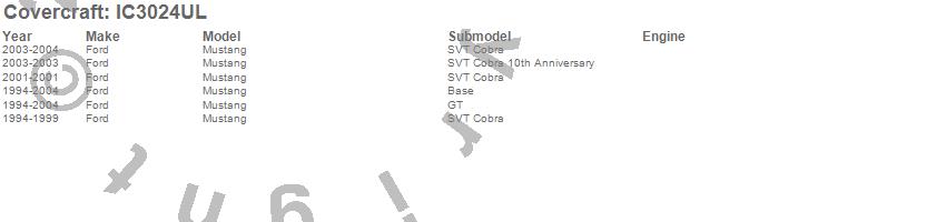 Below is an abbreviated list of applications for the Custom Convertible Interior Cover.Mustang, Ford, 2004, 2003, 2002, 2001, 2000, 1999, 1998, 1997, 1996, 1995, 1994