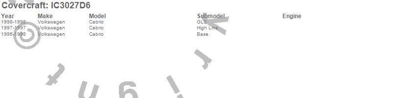 Below is an abbreviated list of applications for the Custom Convertible Interior Cover.Cabrio, Volkswagen, 1998, 1997, 1996, 1995