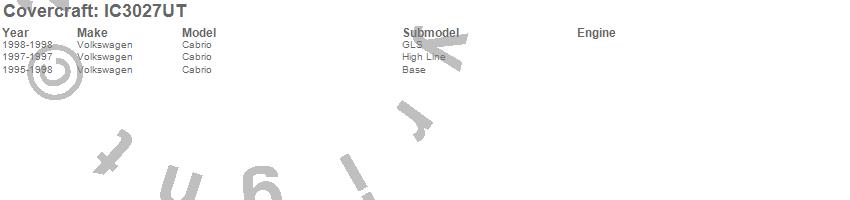 Below is an abbreviated list of applications for the Custom Convertible Interior Cover.Cabrio, Volkswagen, 1998, 1997, 1996, 1995