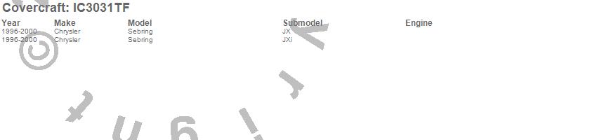 Below is an abbreviated list of applications for the Custom Convertible Interior Cover.Sebring, Chrysler, 2000, 1999, 1998, 1997, 1996