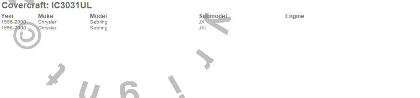 Below is an abbreviated list of applications for the Custom Convertible Interior Cover.Sebring, Chrysler, 2000, 1999, 1998, 1997, 1996