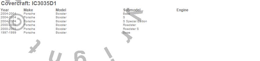 Below is an abbreviated list of applications for the Custom Convertible Interior Cover.Boxster, Porsche, 2004, 2003, 2002, 2001, 2000, 1999, 1998, 1997