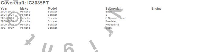 Below is an abbreviated list of applications for the Custom Convertible Interior Cover.Boxster, Porsche, 2004, 2003, 2002, 2001, 2000, 1999, 1998, 1997