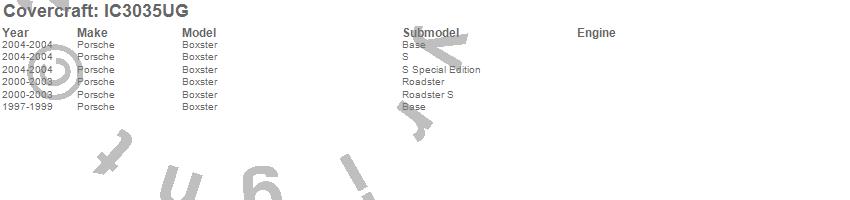 Below is an abbreviated list of applications for the Custom Convertible Interior Cover.Boxster, Porsche, 2004, 2003, 2002, 2001, 2000, 1999, 1998, 1997