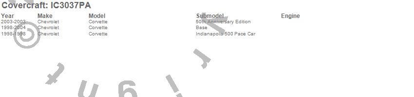 Below is an abbreviated list of applications for the Custom Convertible Interior Cover.Corvette, Chevrolet, 2004, 2003, 2002, 2001, 2000, 1999, 1998