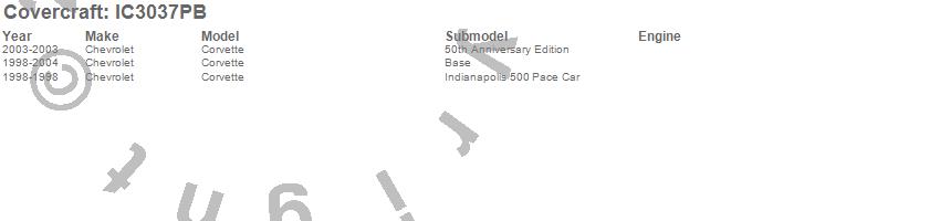 Below is an abbreviated list of applications for the Custom Convertible Interior Cover.Corvette, Chevrolet, 2004, 2003, 2002, 2001, 2000, 1999, 1998